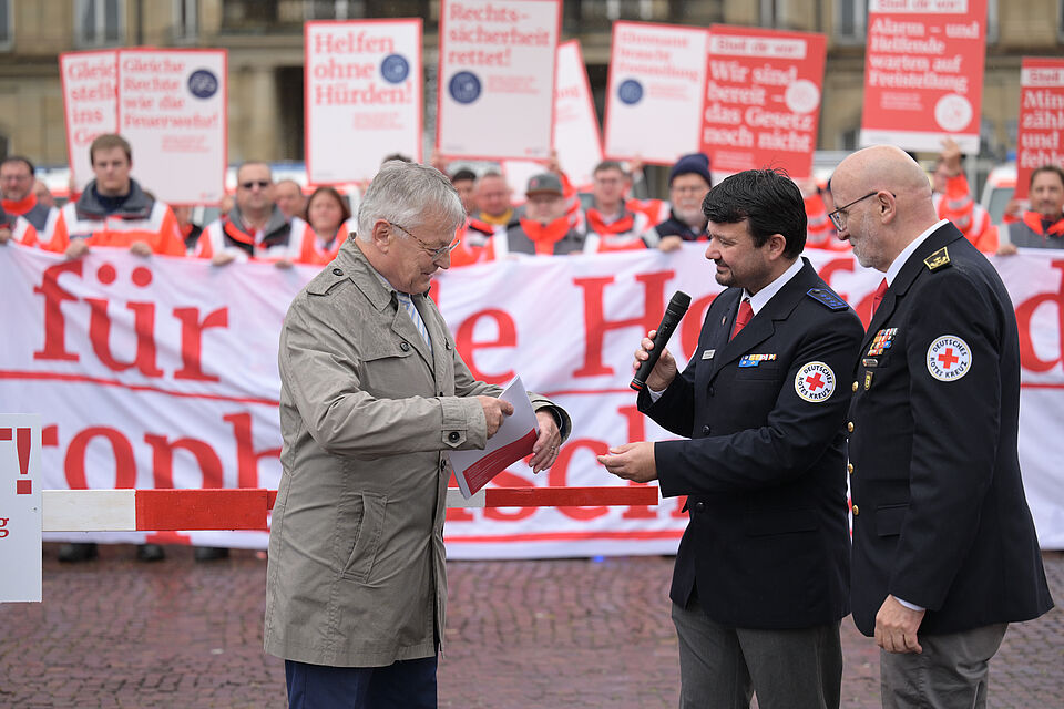 Den Helferinnen und Helfern des DRK und der anderen Hilfsorganisationen fehlen bislang landesweit einheitliche Regelungen für Freistellung und Entschädigung – anders als bei Feuerwehr und THW. Nur im Katastrophenfall und bei außergewöhnlichen Einsatzlagen ist geklärt, dass sie von der Arbeit freigestellt werden und einen Lohnersatz erhalten. Bei kleineren Einsätzen, für Übungen oder die Aus- und Fortbildung müssen sie Urlaub nehmen, Überstunden abbauen oder auf die Kulanz des Arbeitgebers hoffen.