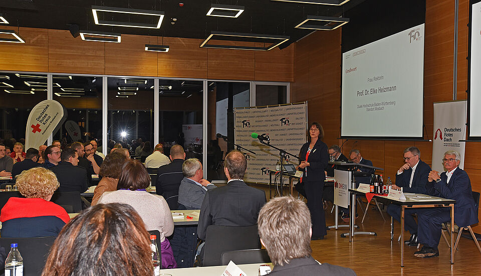 Gold und Silber gab es bei der DRK-Kreisversammlung im Audimax der DHBW in Mosbach! Diana Nerpel von der Bereitschaft Trienz, Margit Walter und Stefan Merkert vom Ortsverein Billigheim und Alexander Roos von der Rettungshundestaffel wurden mit der Verdienstmedaille in Silber ausgezeichnet. Die Medaille in Gold gab es für Bettina Hamberger aus Neudenau und Urban Fuchs vom Ortsverein Billigheim sowie für Hermann Schulz vom Ortsverein Limbach, den früheren Geschäftsführer Linus Vetter und für Präsident Gerhard Lauth. Neben den Ehrungen hörten die Delegierten aus den Gruppierungen Tätigkeitsberichte der Verbandsspitze, hatten einige Beschlüsse zu fassen, wurden über die DHBW informiert und nutzten den Abend im schönen Audimax vor allem für gute Gespräche. Dankeschön an die Duale Hochschule, an alle Beteiligten, Delegierten und an unsere Gäste.