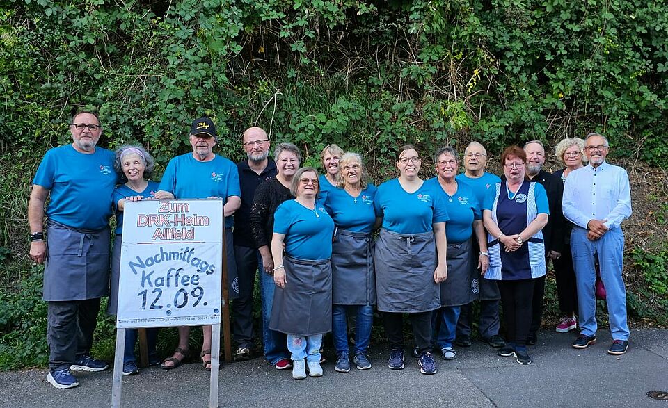 Die Vorsitzende der Gemeinschaft, Margit Walter, stellte das zum Einjährigen angeschaffte neue Outfit ihres elfköpfigen Teams vor: einheitliche blaue Shirts mit einem Logo, das ihr Enkel gestaltet hatte. Ihr großes Dankeschön galt den fleißigen Kuchenbäckerinnen, Köchen und überhaupt allen Helfern: „Ohne euch wäre das nicht zu stemmen.“