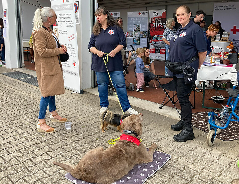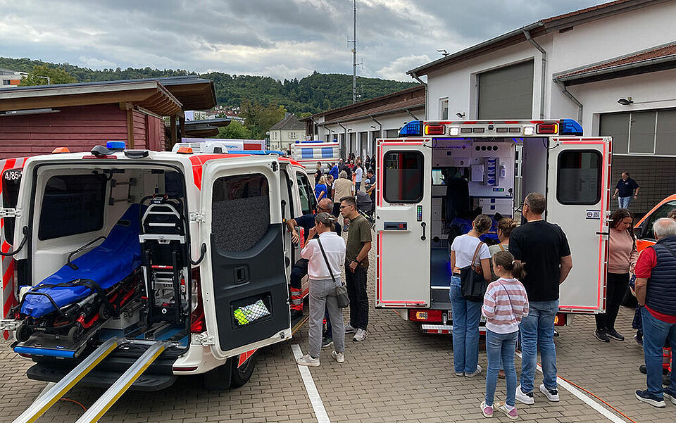 Viele hundert Interessierte, darunter vor allem Familien mit Kindern, kamen trotz teilweise schaurigem Wetter zum Tag der offenen Tür beim DRK-Kreisverband Mosbach rund um die Rettungswache in der Sulzbacher Straße. Dort informierten Ehren- und Hauptamtliche an Ständen über die DRK-Angebote vom Hausnotruf über die Helfer vor Ort und den Rettungsdienst allgemein bis hin zur Ausbildung im Roten Kreuz und der Therapiehundegruppe. Natürlich waren die Einrichtungen der ambulanten und stationären Pflege ein Anziehungspunkt, ebenso die Leitstelle.