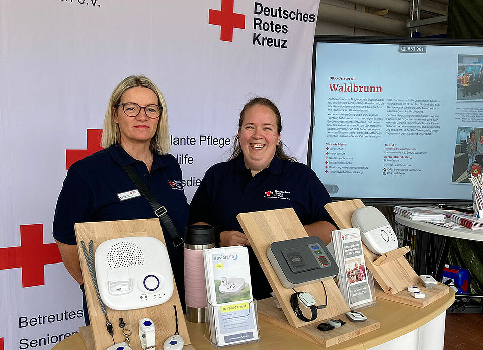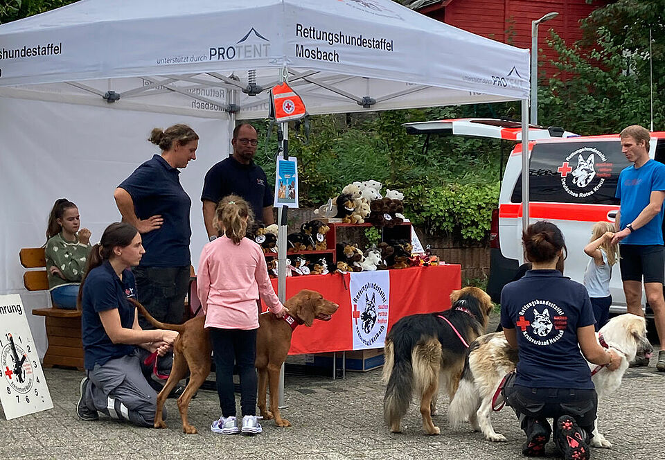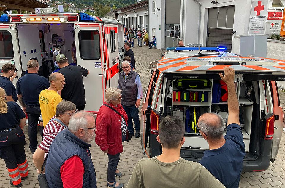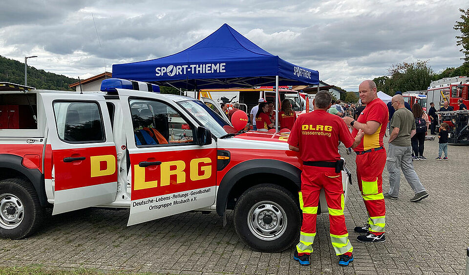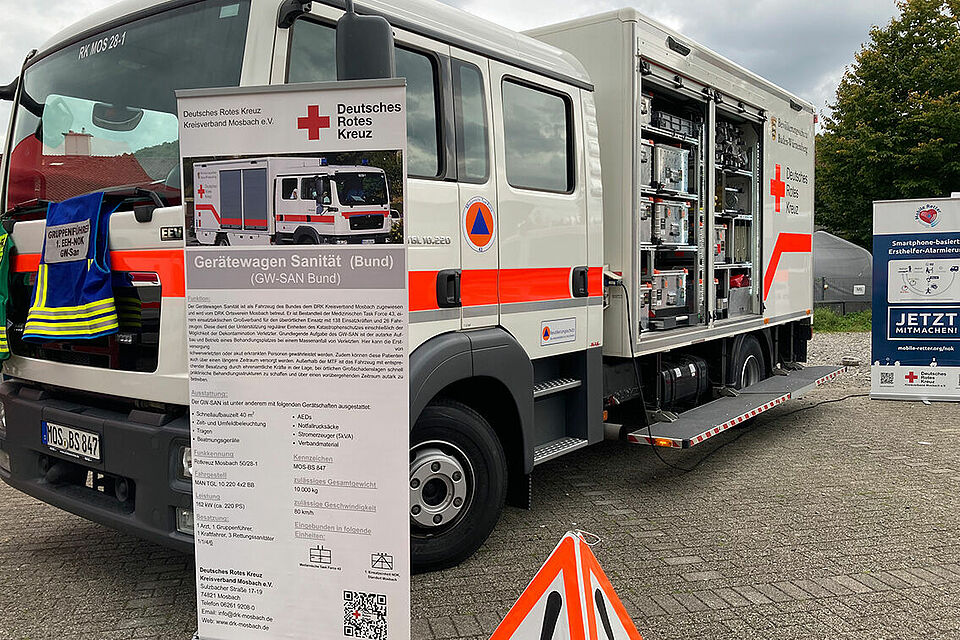 Interessierte konnten dort Sonderfahrzeuge von DRK, Feuerwehr, DLRG, THW, PSNV und weiteren Partnern des Katastrophenschutzes besichtigen. Man konnte die mobile medizinische Versorgungseinheit des DRK-Landesverbands - eine komplette Praxis in einem Sattelzug – und das Bevölkerungsschutzmobil des Innenministeriums in Augenschein nehmen, sich über die Arbeit der verschiedenen Hilfsorganisationen informieren und Vorführungen der Rettungshundestaffel verfolgen. Für die kleinen Besucher gab es verschiedene Glücksräder und bei der Lackiererei Herrmann eine Station, an der man sich ein Käppi bunt besprühen konnte.
