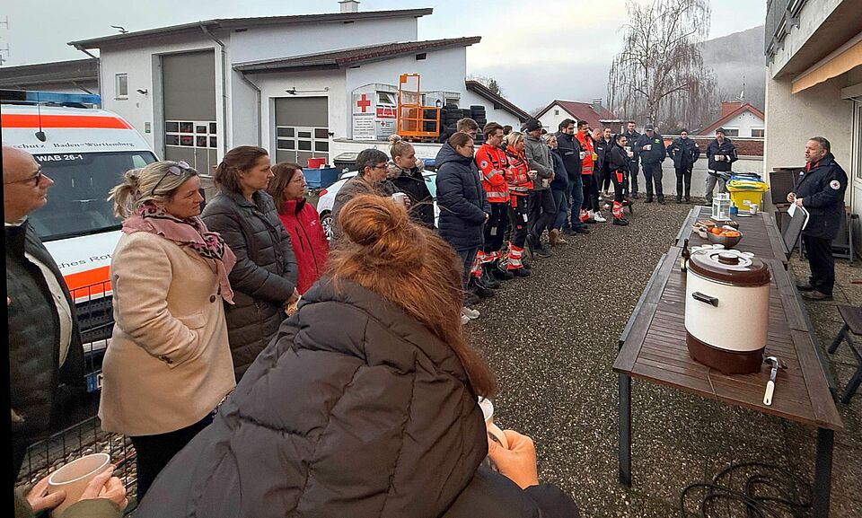 Die Mitarbeiter der DRK-Kreisgeschäftsstelle und der Rettungswache in der Sulzbacher Straße in Mosbach trafen sich ebenfalls zur “Frühschicht” - auch hier stand der Wunsch nach Frieden und Stille im Vordergrund.